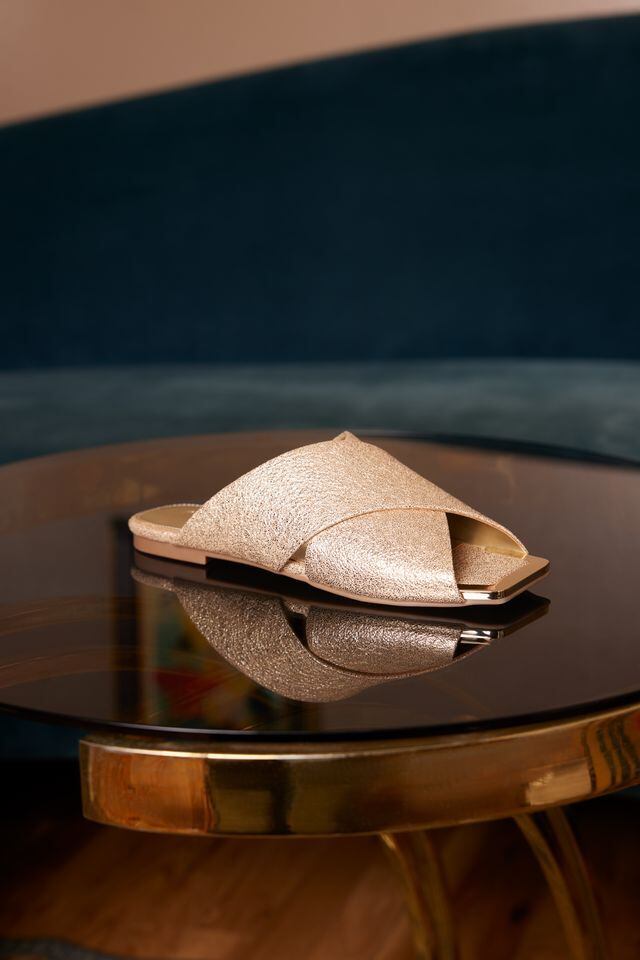 足の甲がクロスになったデザインは、エレガントでありながらカジュアルな雰囲気を演出し、様々なスタイルにマッチします。